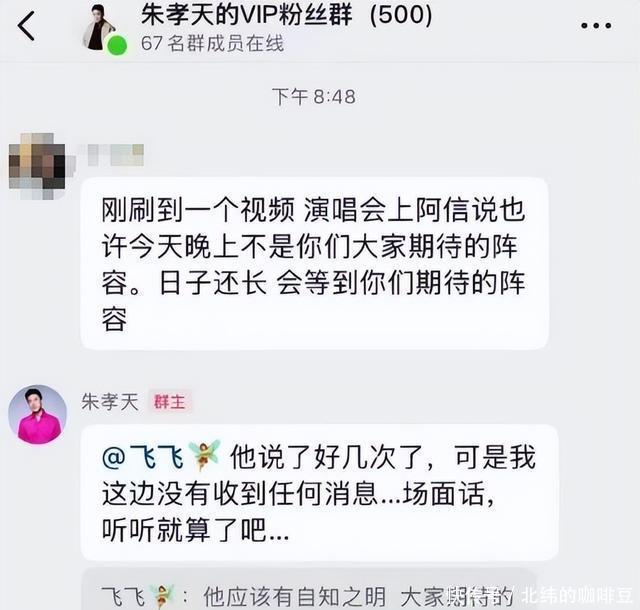 阿信还在结尾的时候,感谢了大家,提到了没有出现的朱孝天,粉丝们又去群里问朱孝天,没想到这一次朱孝天直接放出重磅消息,指出五月天的经纪公司存在严重违规事件: 勾结黄牛炒票、跨境转移资金逃税、要求艺人假唱。